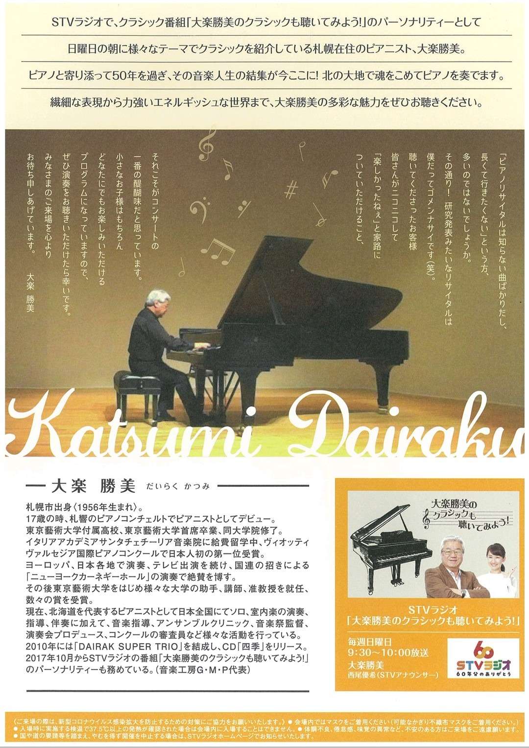 札幌市|STVラジオ開局60周年特別企画「大楽勝美のラ•カンパネラ=大楽勝美ピアノリサイタル」のお知らせ【音楽工房G.M.P】